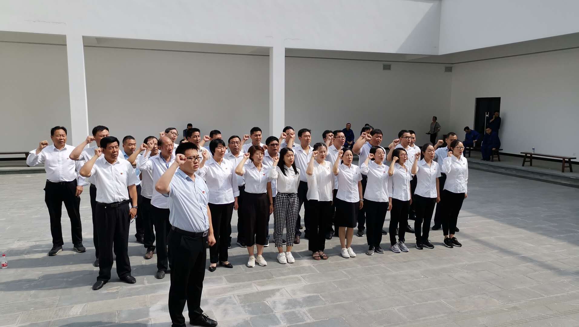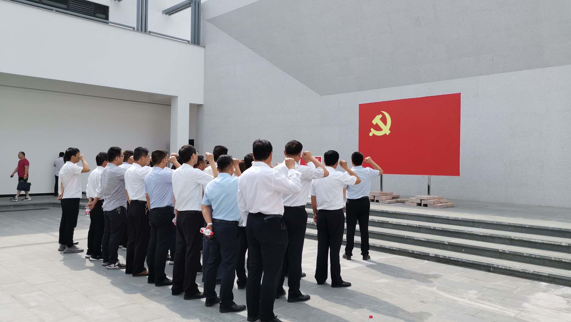 現(xiàn)場參觀學(xué)習(xí)結(jié)束后,全體黨員面對鮮紅的黨旗,集體宣誓,重溫入黨誓詞,堅(jiān)定理想信念,提升思想境界。